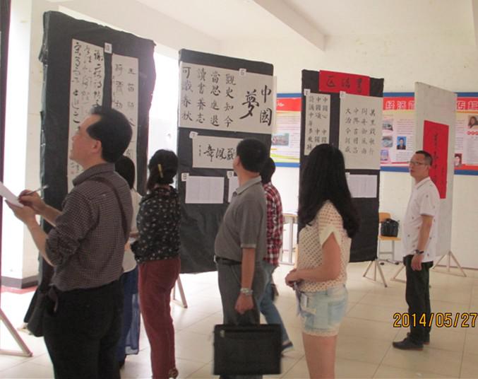 为了提高老员工的艺术修养和审美情操,给书画爱好者提供一个展示自我的平台,我系宣传部于2014年5月27日下午在新区求真楼b区一楼大厅举办了“青春中国梦”书法绘画大赛。
