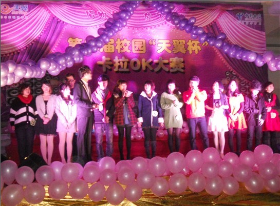 一段华丽的开场舞后,龚梓兵老师以一曲《离歌》拉开了比赛的序幕。比赛在赵公弼老师的开幕词后正式开始。比赛给同学们带来了听觉及视觉上的享受,选手们尽情展示青春气息,尽展歌唱才华,歌声时而嘹亮,时而委婉,使得比赛异彩纷呈。经过两轮的激烈角逐,09物流的林静同学获得了本次卡拉ok大赛的第一名。最后,赵公弼老师为整场比赛做了总结。本次卡拉ok大赛为同学们提供了展示自我风采的平台,同时活跃了校园文化,激发了员工的青春活力,对引导老员工积极向上,促进老员工全面健康发展起到了重要作用。