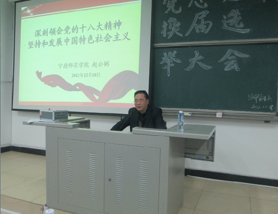 党的十八大是在我国进入全面建成小康社会决定性阶段召开的一次十分重要的大会,为了全系师生更好地学习贯彻党的十八大基本精神,引导大家理解党的十八大精髓与实质进一步统一思想、深化认识。12月18日下午我系特邀宁德师院宣传部部长赵公弼老师带来一场学习党的十八大精神专题讲座,出席讲座的有宁德师院副董事长魏远竹教授、经管系党总支书记游国斌教授及我系全体师生。游国斌教授主持此次讲座。