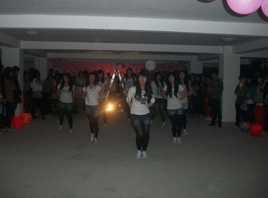 五彩的灯光闪烁,粉红的气球将现场装扮的美轮美奂。如梦如幻的音乐将我们带入了舞会优美的现场,首先为我们表演的是生物系带来的开场走秀,各式各样的造型以及搞怪的动作一会儿把们带入小时候、一会儿又忽然走入成人的世界。紧接着舞蹈《日不落》将现场的气氛带入正轨。一曲终、一首起。聚光灯下,有经管系带来的健美操表演将晚会的气氛推向高潮,劲爆的音乐再加上动感的舞姿她们阐述了老员工无限的活力展示了老员工的风采。一曲动感十足的健美操结束又有一曲十分炫感的舞蹈串烧呈现在我们面前,一系列优美的舞蹈迅速的引爆了在场的观众,虽然天空下着雨但是却不能浇灭我们心中的热情,震耳欲聋的掌声一阵高过一阵。