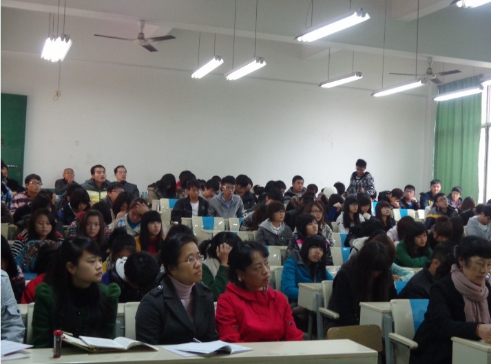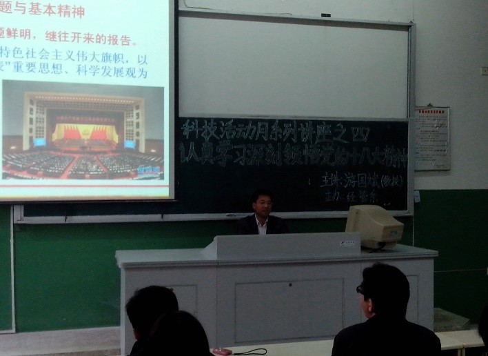 党的十八大是在我国进入全面建成小康社会决定性阶段召开的一次十分重要的大会,为了全系师生更好地学习贯彻党的十八大基本精神,引导大家理解报告精髓与实质,进一步统一思想、深化认识,也作为我系迎接校科技文化月的一大活动。系主任游国斌教授于2012年12月4日下午15:00在师院老校区为师生们举行了“认真学习深刻领悟党的十八大精神”专题讲座。经管系全体师生以极大的热情出席此次讲座。