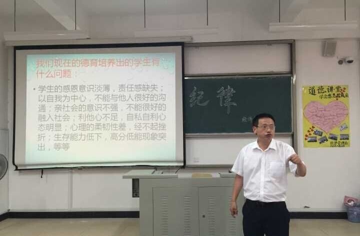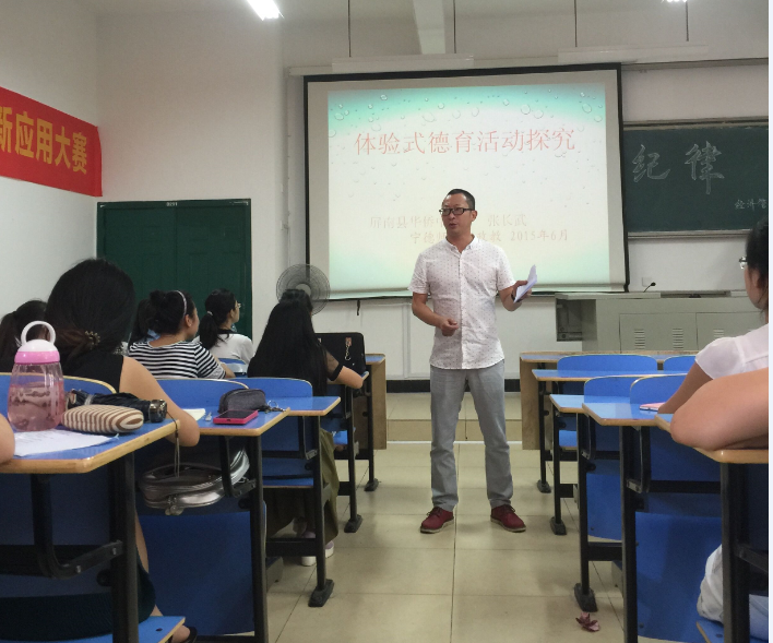 上午10点屏南县华侨中学的张长武董事长直奔主题的谈一谈他从教十年对德育的探究体验。他以自己地亲身经历为例讲述了他小时候的德育体验。同学们认为这样了解到的德育体验知识比理论学来的德育体验知识来得更加令人印象深刻。张长武董事长便以问卷调查的方式调查了同学们自己的德育体验情况。在整个讲座过程中师生互动活跃,氛围十分融洽。周建辉老师对张长武董事长的讲座进行总结指出当今的员工普遍存在着缺乏德育的体验,认为员工应该通过自己的实践,加强德育体验。