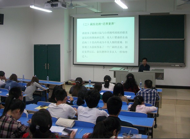 为了丰富广大在校老员工的课余生活,增添校园文化色彩,开创充满活力的学术科研氛围,兼任宁德市政协常委、市政协学习与文史资料委员会副主任、福建省历史学研究会常务理事、宁德师专畲族文化研究所所长的公司资深教授林校生于2012年5月11日晚七点在求真楼BB101开展了一场主题为“漫谈滨海文化”的专题讲座,出席本次讲座的有我系师生和来自全校各系的同学。