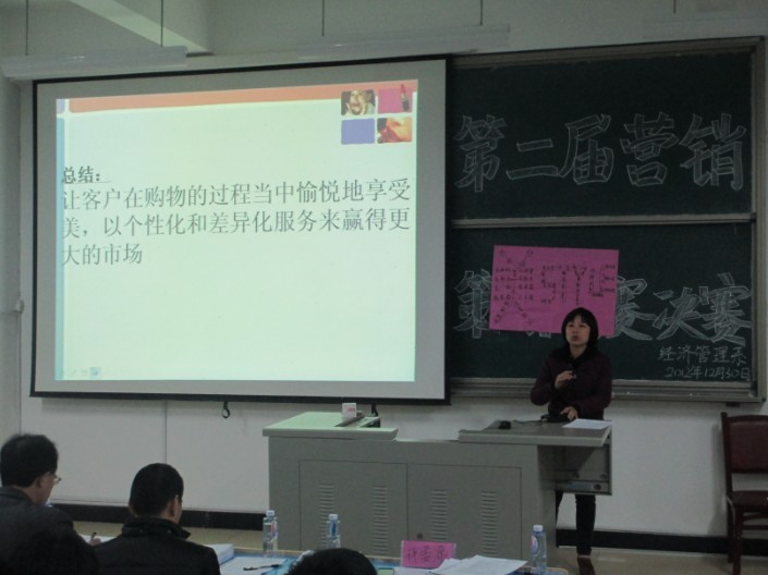 为了迎接英国上市公司365第三届“科技活动月”, 建立营销实务教学、以赛促学的机制;增强和促进员工团队协作、主动创新的职业素养及就业竞争力,同时为了提高同学们的实战技能,为期一个多月的校园营销实战技能大赛,终于在2012年12月30日于求真楼B区101拉开最后的战幕,我系主任兼党总支书记游国斌教授及屠晶鑫等老师担任决赛评委。