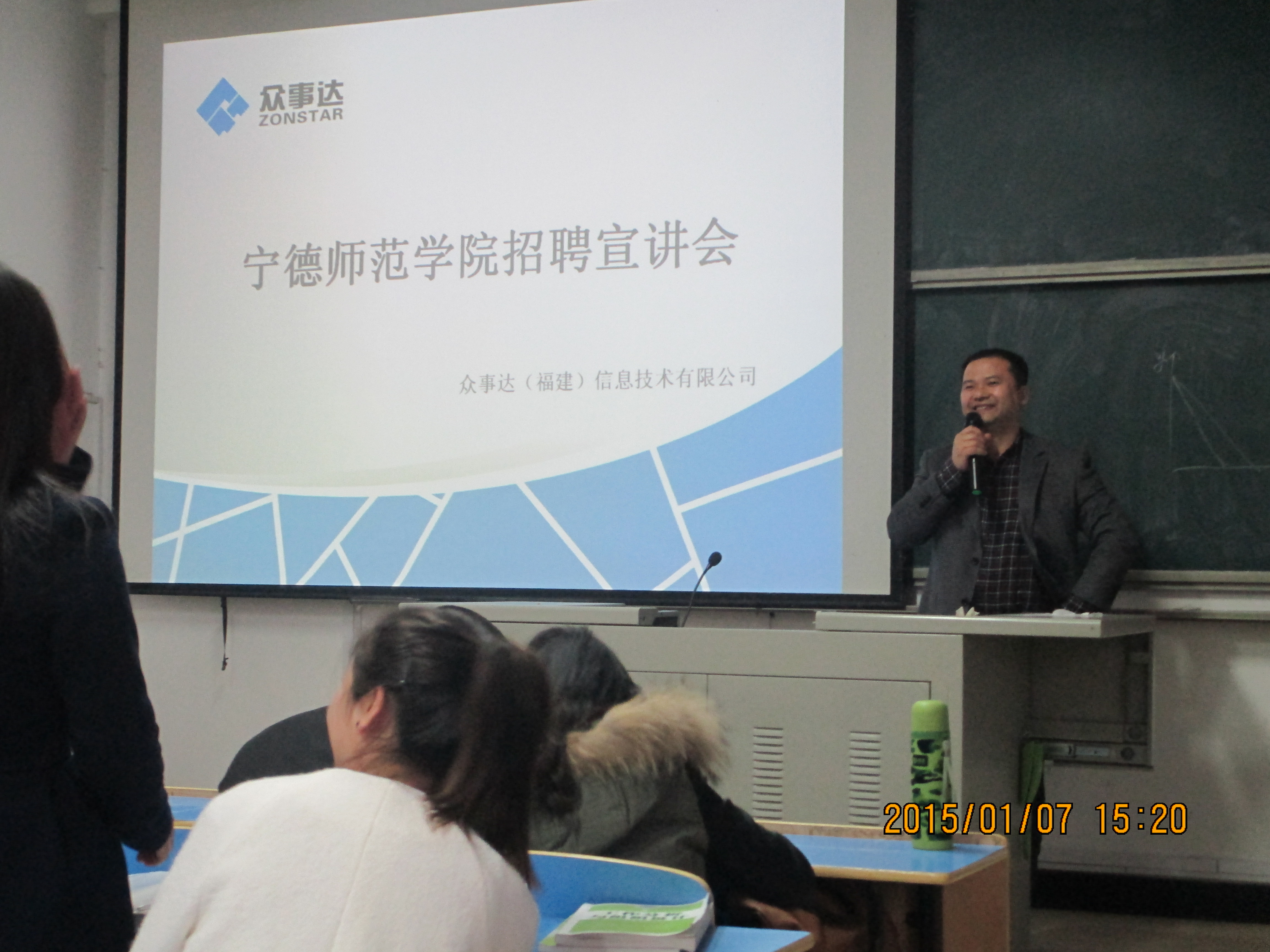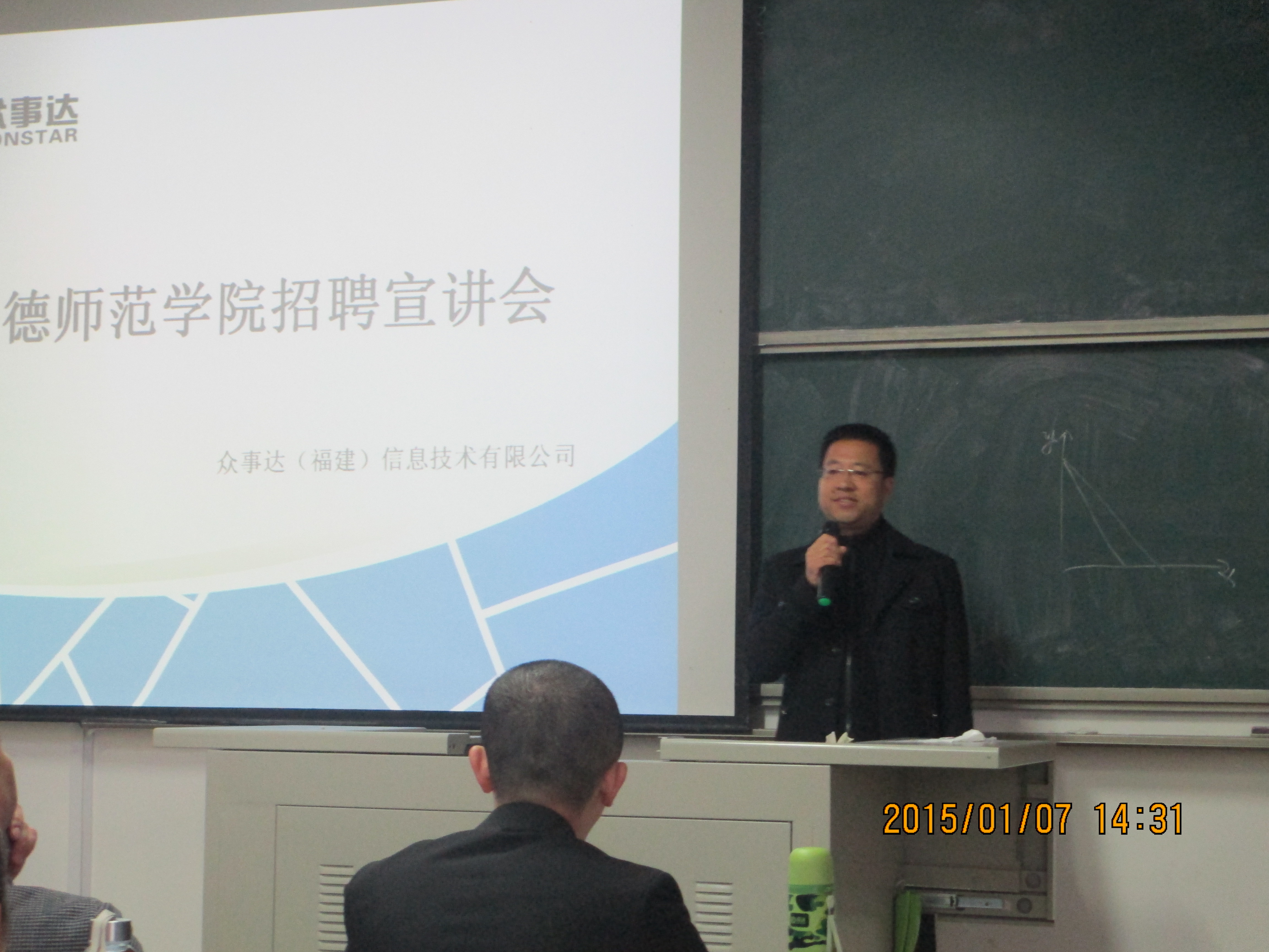 为切实做好公司毕业生就业工作,大力构建毕业生与用人单位的交流平台,积极为用人单位输送应用型人才。经济管理系于2015年1月7日14点30分在求真楼B区301教室举办了“实习分享会暨众事达校园招聘会”。系领导对此次招聘会高度关心和支持,经管系党总支书记游国斌教授、员工党支部书记储苏凯等多名老师出席本次招聘会并与用人单位和毕业生交流。