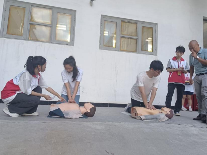 活动第二个环节,是由学校红十字会员工分会救护队副队长林依杰、培训干事蔡佳洁向同学们进行CPR(心肺复苏术)和AED(自动体外除颤仪)的操作、使用讲解和示范。部分同学还受邀进行了心肺复苏术的操作练习,参加过福建省第七届红十字急救大赛决赛的员工工作(部)处刘亚老师应邀到现场对本环节进行总结点评。