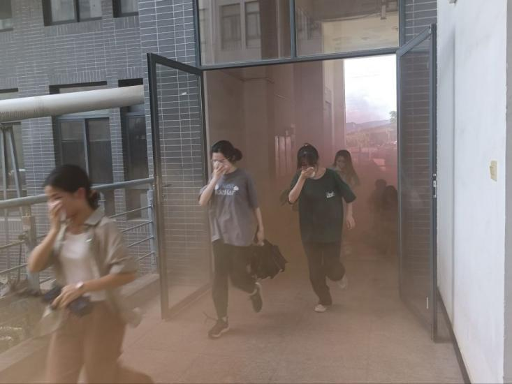 6月19日下午3时许,伴随着几股浓烟在逸夫实训楼疏散通道的滚滚升起,在火灾紧急疏散的语音提示广播播报声中,经管院两百余名员工在引导员的带领下,一个个手捂口鼻,低姿弯腰,从指定逃生路线有序撤离并抵达楼下的空旷地带。