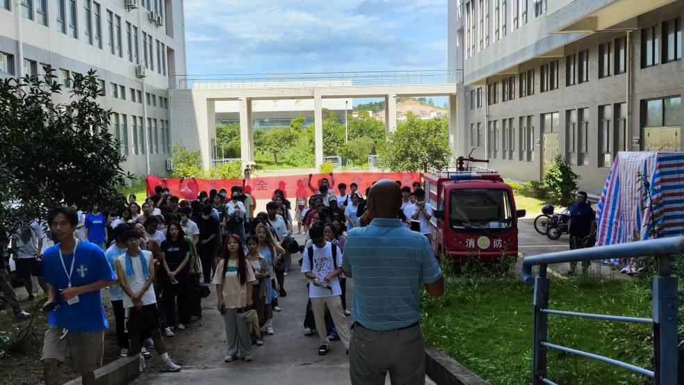 随后,校保卫处消防科雷良灿老师对应急疏散演练过程进行点评,并进行消防安全知识讲解。他对本次演练前期准备表示肯定,同时也指出了同学们在演练过程中存在的问题。他要求同学们遇到突发紧急事件,要做到沉着冷静,科学自(互)救、迅速逃生,确保安全。希望同学们通过演练,安全意识和救护本领得到提升,在以后的学习、生活中能以身作则,带动更多的人关注消防,参与消防。