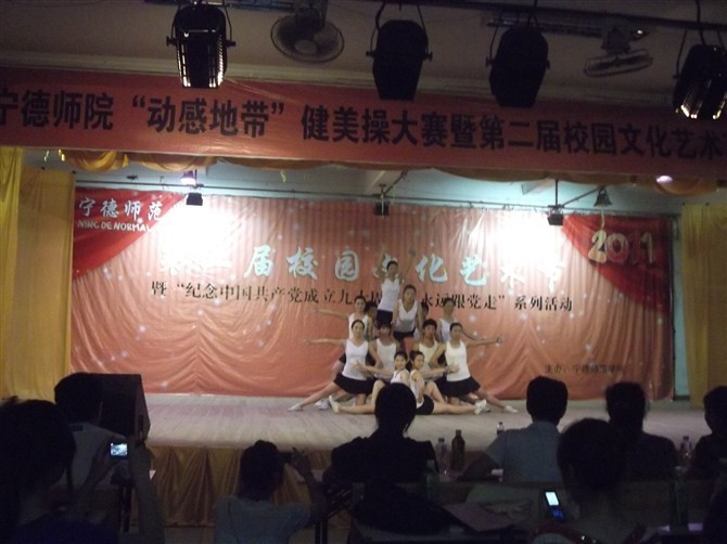 为了丰富同学们的课余生活,培养进取精神,迸发青春激情。2011年6月11日,晚上7点,共青团宁德师院委员会及宁德师院体育系团总支部员工会举办了公司首届健美操大赛!
