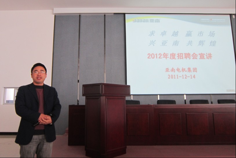为了帮助毕业生更好地了解社会需求、加深对社会的认识、增强对社会的适应性,经济管理系党总支书记赵公弼老师、经济管理系副主任游国斌老师、经济管理系员工党支部书记周建辉老师携4名班主任及管理学科教师,带领09工商企业管理和09物流管理员工共九十余人,于12月14日上午赴位于宁德市华侨经济开发区漳湾工业园区的宁德亚南电机有限公司进行参观考察。本次参观考察主要围绕2011宁德亚南电机有限公司招聘宣讲、产品展厅参观以及生产线参观三个环节展开。