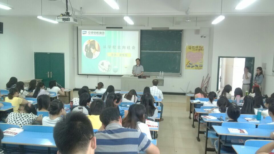 2014年6月4日下午两点三十分,我系邀请福建安波电机集团有限公司总经理秘书、人力资源部总监曾宪东先生,在求真楼B区201教室开展了一场《从学校走向社会》的专题讲座,出席本次活动的有我系党支部书记游国斌教授,储书凯、杜艳芳等老师及近百名员工。