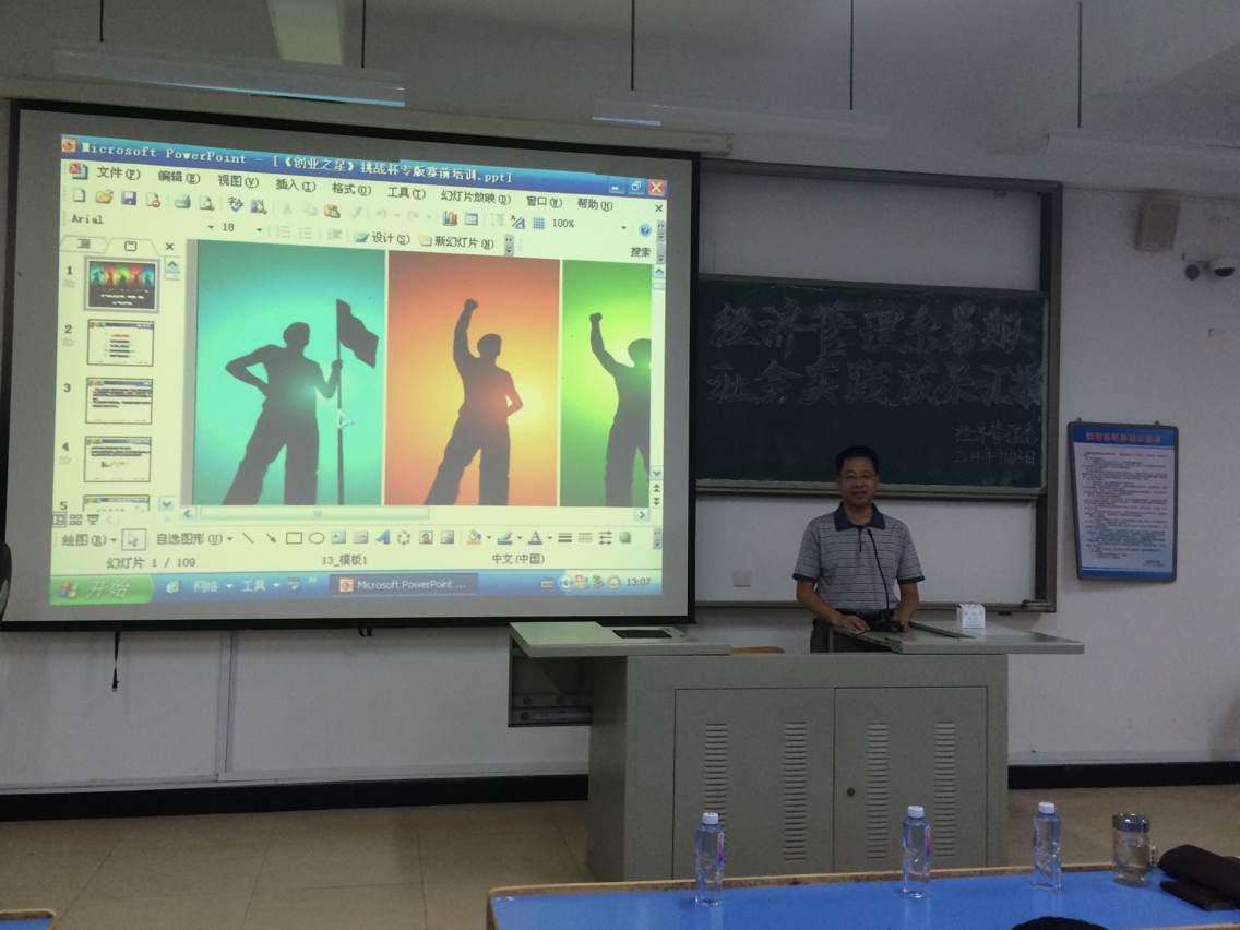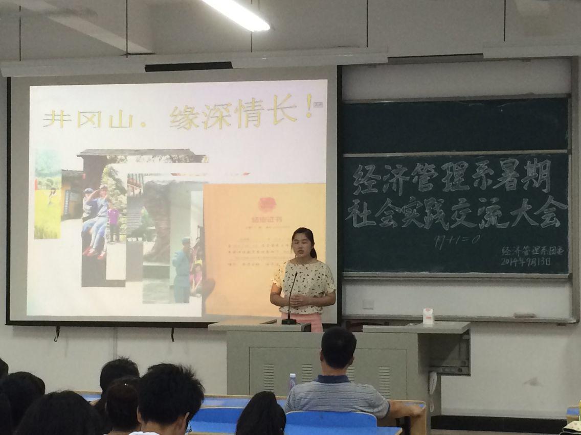 2014年9月13日下午三点,经济管理系在求真楼Bb201举办暑期社会实践成果汇报会。出席本次汇报会的有:经济管理系党总支书记游国斌教授,系主任助理游天嘉副教授,员工党支部书记储苏凯老师,专职辅导员杜艳芳老师及我系7支暑期社会实践队成员。