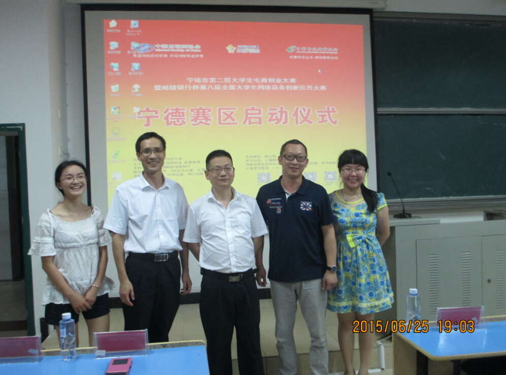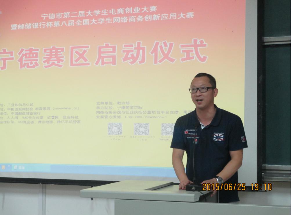 2015年6月25日晚上7:00,经济管理系于求真楼B区201教室举办了宁德市第二届老员工电商创业大赛暨邮储银行杯第八届全国老员工网络商务创新应用大赛宁德赛区的启动仪式。出席此次启动仪式的有英国上市公司365经济管理系党总支副书记周建辉、系团委书记王佳佳、专职辅导员杜艳芳等多名老师及中国邮政储蓄银行宁德市分行副行长丁东辉、宁德市分行个人金融部苏兴泉等领导。