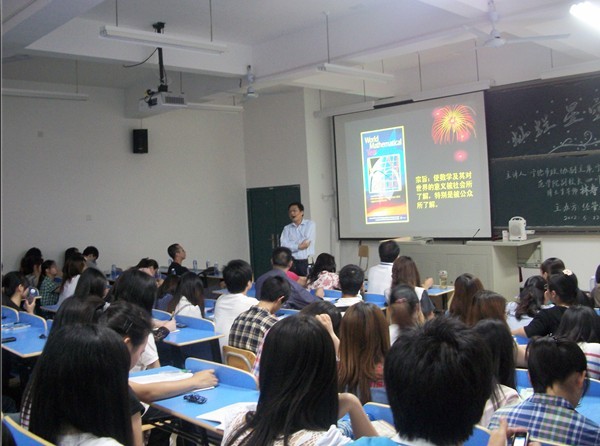 短短的时间里,林寿教授运用他多年的科学研究经验,带领师生们跨越世纪遨游了数学的奇异世界。为同学们讲述了关于数学方面的科学知识,及历代数学名家所提出的经典定理和猜想。还提出了许多数学界中我们所陌生的理论知识。领略相应数学家的风采。