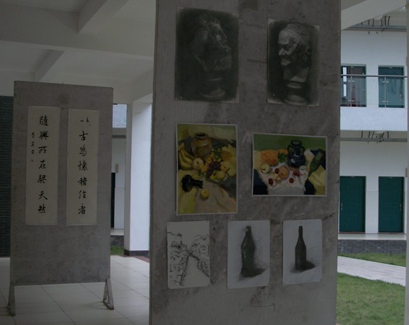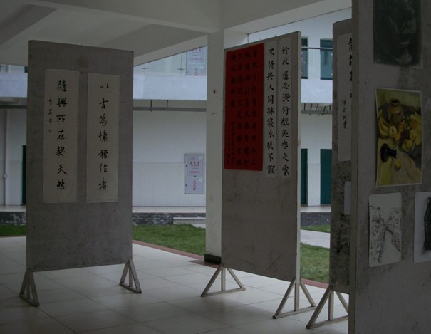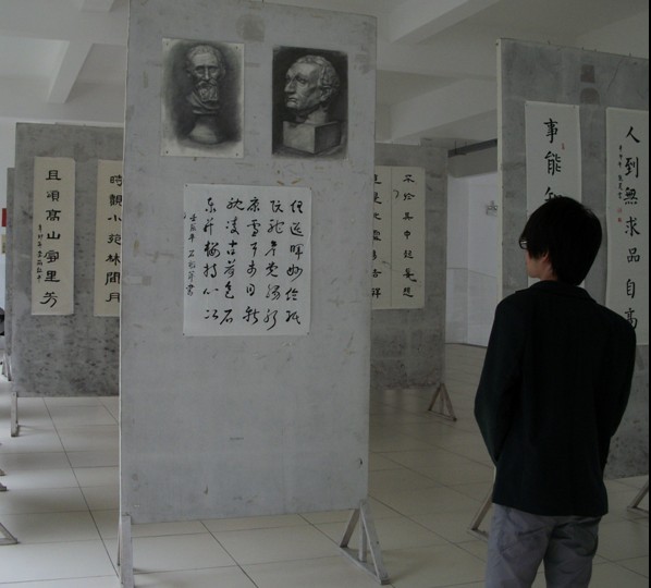为了活跃我系的文化氛围,增强我系人文气息,同时也为了展现当代大学时在书画方面的才能。2012年4月17到4月18日我系在求真楼B栋B区喷泉广场,举办了“情系书画、尽展风采”为主题的书画展。此次参展的作品多为我系员工课余时创作的。在展出的近百幅作品中有行云流水的行书,意境高远的水墨,惟妙惟肖的素描和浓墨重彩的水粉画。此次书画展采用音乐与书画相结合的方式,使师生们在欣赏书画的同时还可以享受到中国轻音乐,如高山流水、鱼舟唱晚之类的,不但开拓了眼界,也陶冶了情操,让人心情舒畅、轻松。