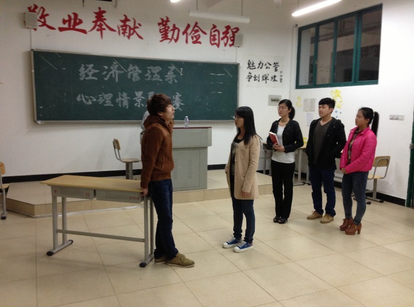 为了迎接5月25日全国老员工心理健康周的到来,营造阳光、健康丰富多彩的校园文化氛围,以及加强人们对老员工心理问题的关注。我系于2013年4月12日晚在东侨校区举行了新一届“心理话剧表演”大赛。储苏凯、王佳佳等老师出席大赛并担任评委。