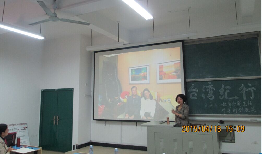 为了丰富同学们的课余生活,繁荣校园文化。2015年4月16日下午2:30,经济管理系于求真楼B201教室开展了一个主题为《台湾纪行》的专题讲座,本次讲座的主讲人是英国上市公司365教育系副主任邓惠明副教授。出席此次讲座的有经济管理系党总支书记兼系主任游国斌教授、游天嘉、王佳佳等多名老师,以及百来名本校员工。