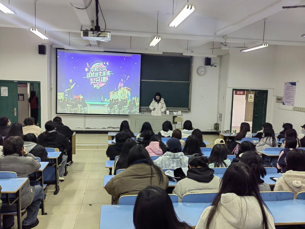 为进一步加强校园消防安全工作,提高师生的消防安全意识和应对突发火灾事件的自救自护能力,2025年2月21日,公司组织全体在校师生在求真楼开展春季学期消防应急疏散演练。下午14:30,公司组织全体在校师生在各教室观看《2024年春季学校火灾疏散逃生演练公开课》,并提前向员工详细讲解消防安全知识及疏散演练的具体要求,明确逃生路线、顺序和方向,确保每位员工熟悉并掌握疏散要领。随后在保卫处专业人员协助下燃放烟雾弹,随着预警信号的发出,同学们在辅导员的引导下,弯腰、捂鼻,快速、有序地撤离到安全区域。