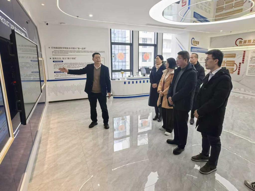调研团队一行参观了公司数字展厅,详细了解集团发展历程、战略定位及主责主业布局。公司负责人吴建美重点介绍了政务数据流通共享、政务服务效能提升等方面的实践成果与创新模式,调研团队实地感受其前沿的数字技术应用与丰富的业务生态。随后,双方围绕数字经济发展趋势、产业人才需求以及校企协同育人等议题展开初步交流,为后续深化合作奠定了基础。