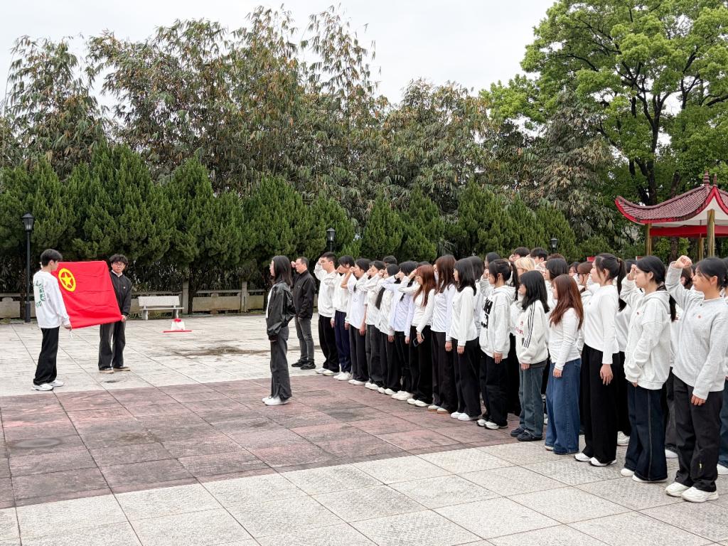 随后,院团委副书记宋琴老师带领全体团员重温入团誓词,带领在场党员面向党旗重温入党誓词。铿锵誓言在陵园上空回荡,彰显青年师生坚定的理想信念与责任担当。