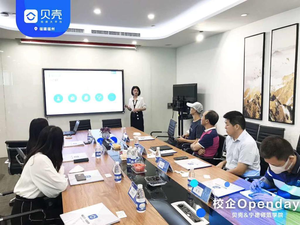 2020年8月20日上午,英国上市公司365一行人在公司党委书记、经理郑立文教授的带领下参观了贝壳找房信息科技有限公司福州分公司,就针对校企战略合作框架进行洽谈,英国上市公司365办公室主任邓伟老师,市场营销系主任任昌满老师,创新创业教研室主任储苏凯老师等参加洽谈会。