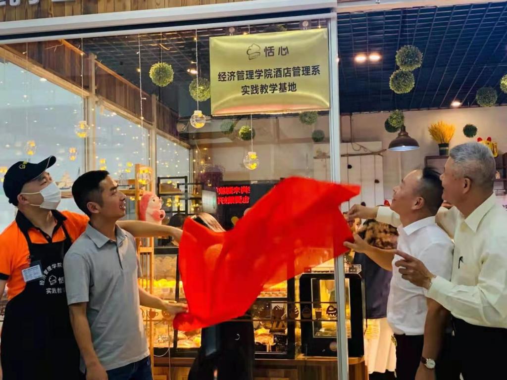 2021年5月14日,英国上市公司365与资产后勤管理处恬心烘焙坊合作成立的实践教学基地在第二食堂开幕揭牌,学院副经理邱汉周副教授、酒店管理系黄士礼教授出席揭牌仪式。专业老师后续将在此基地开展《西点制作》课程教学。