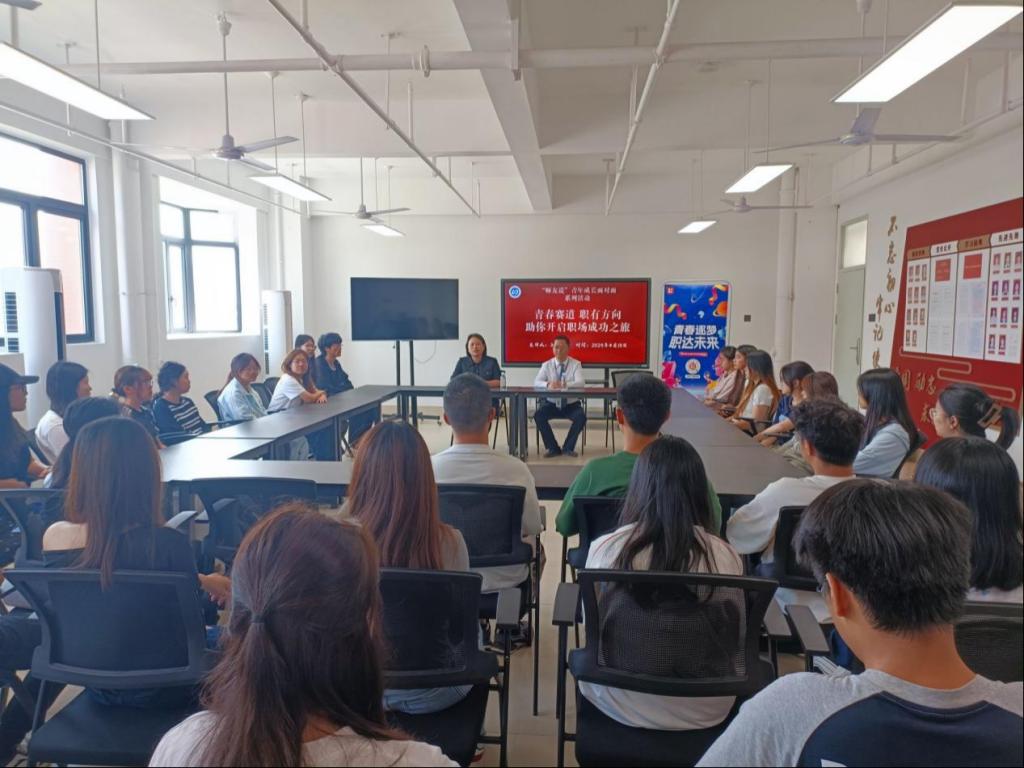 为帮助在校生明确职业发展方向,提升就业竞争力,4月18日,公司组织30名员工代表在第三园区党员活动室内开展<青柠职说>系列讲座——商者诚心:青春赛道,职有方向。本次活动邀请学工处就业指导中心陈水铢老师担任主持人,优秀员工、宁德万达广场商业物业管理有限公司人事行政经理上官延海担任主讲嘉宾。