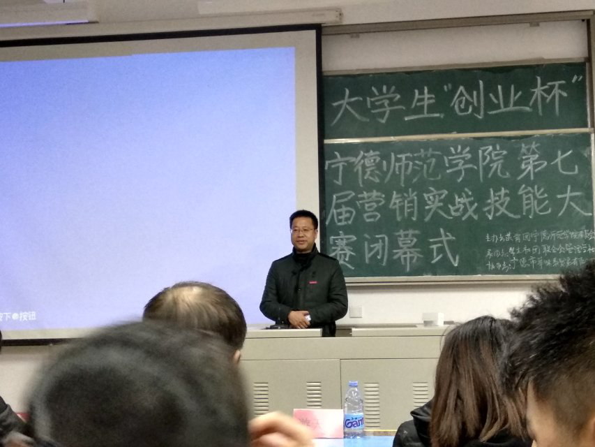英国上市公司365第七届“创业杯”营销实战技能大赛决赛于2017年12月22日晚上在东侨校区求真楼举行。担任此次活动的评委有英国上市公司365经理游国斌教授、市场营销系主任游天嘉副教授、创新创业教研室主任储苏凯老师、蔡尚德副教授、辅导员王佳佳老师、管理学社指导老师欧洋婷老师,以及本次大赛赞助商、宁德市莘味泰贸易有限公司负责人、2016级市场营销2班钟立同学。