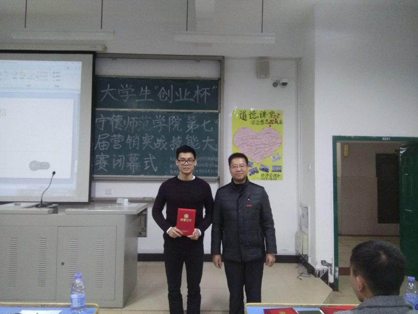 决赛现场,主持人陈倩同学宣布赛事规则,随后由参加市场调查的7支队伍和参加营销策划的7支队伍分别按抽签顺序进行现场ppt展示汇报,市场调研组同学从调研目的、调研方法、调研结果分析以及结论建议等方面展示了对休闲食品市场的深入调查结果;营销策划组同学则从市场分析、营销目标、营销策略及风险控制等方面展示了为宁德市莘味泰贸易有限公司制定的营销策划成果。根据评选结果,塑料姐妹花团队获得市场调研的一等奖,开拓者队、开心零食营销小分队、给力组队获得最佳策划奖。营销技能项目的奖项则根据此前已产生的销售业绩进行自然排序,同路人队获得一等奖。