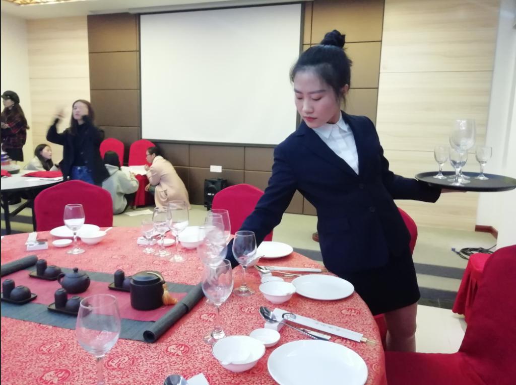 12月7日下午,经济管理公司在逸夫楼酒店技能实训室举行“第六届酒店技能服务大赛初赛”。林翠生老师、陈婕老师、16级酒店管理专业林平同学担任评委。