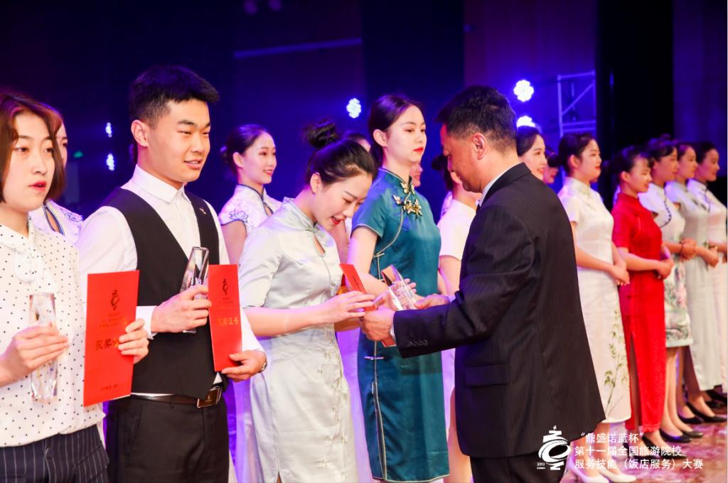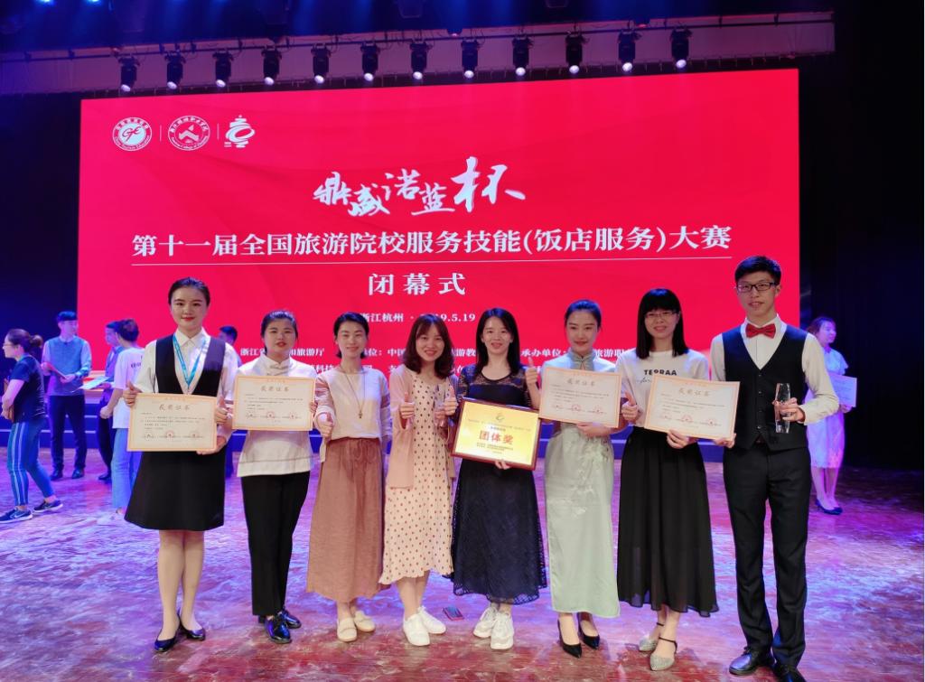 5月16日至19日,由中国旅游协会主办的“鼎盛诺蓝杯”第十一届全国旅游院校服务技能(饭店服务)大赛,在浙江旅游职业学院成功举行,共有来自全国28个省、自治区、直辖市的298所院校参赛队的954名选手报名参赛。大赛分为本科、高职、中职三个组别,设中餐宴会摆台、西餐宴会摆台、中式铺床和鸡尾酒调制四个赛项,从综合理论知识考核、英语水平测试和现场操作三个环节展开角逐。