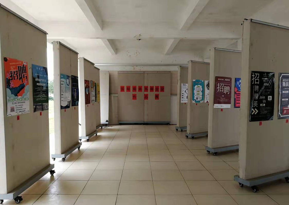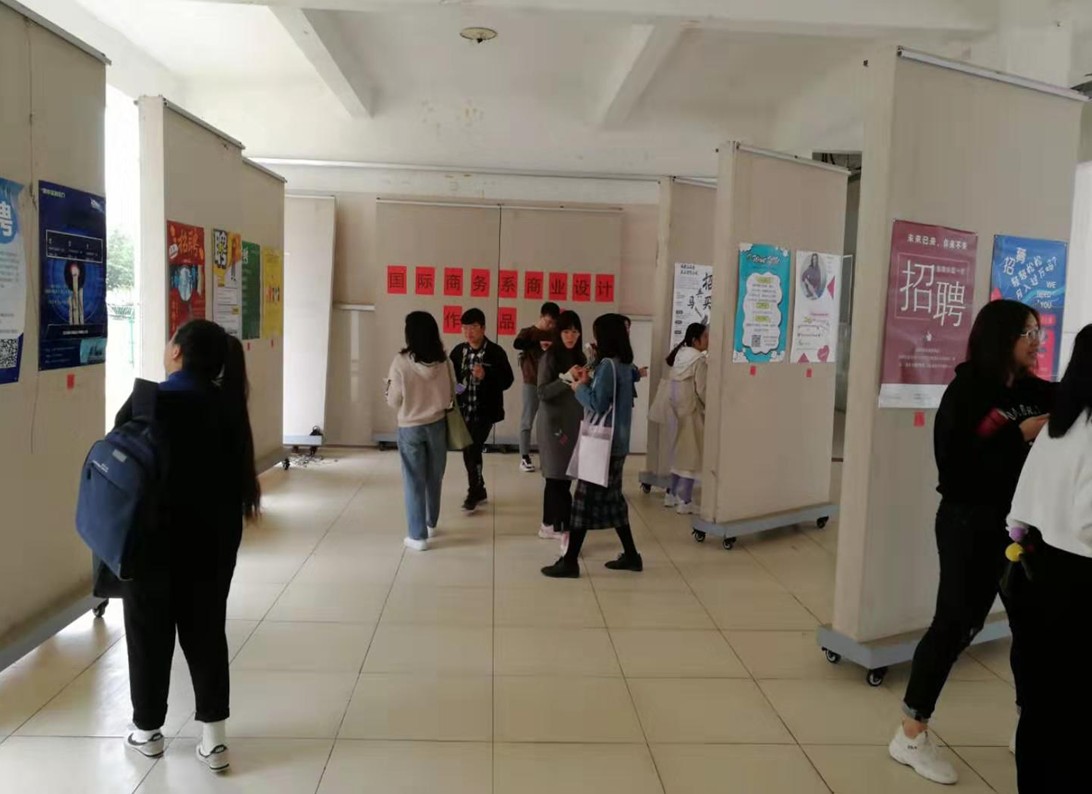 商业设计比赛是国际商务系为了革新教学模式,增强国际商务专业员工的动手能力、商业设计技能和学习兴趣,以《国际商务实训》、《网络营销》两门课程为基础,以“企业人事招聘”海报为主题的一项专业竞赛活动。活动得到了经管院国际商务、市场营销等专业员工的积极响应。参赛员工利用Photoshop、CorelDRAW、Illustrator、InDesign等平面设计软件按照企业人事招聘的真实要求,自主构思、自主布局、自主设计,最终提交了近70份个人原创作品。按照赛制要求,通过初审的48份作品在求真楼一楼大厅集中展示,作品受到了经管院师生的一致好评,甚至有其他院系的员工把参赛作品当作真实的企业招聘活动进行应聘。