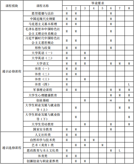 培养目标5:具有良好的人文社会科学素养、服务意识、法律意识和社会责任感,能够通过学习拓展知识,开拓国际视野,适应职业发展,应对全球化的挑战,具备一定的创新和战略思维能力。