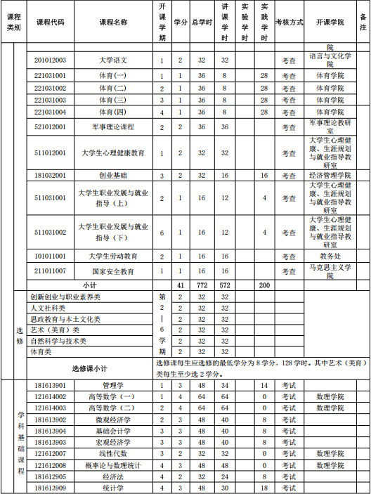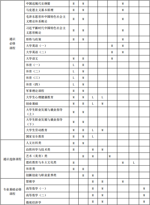 毕业要求3:基础知识。具备扎实的经济学和管理学理论基础,掌握管理学、微观经济学、宏观经济学、基础会计学、金融学、经济法等基本课程内容。