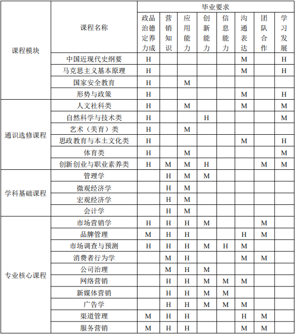 3.应用能力。具有跨领域知识融通能力,能够综合运用相关专业知识和技能,分析与解决市场营销实际问题。