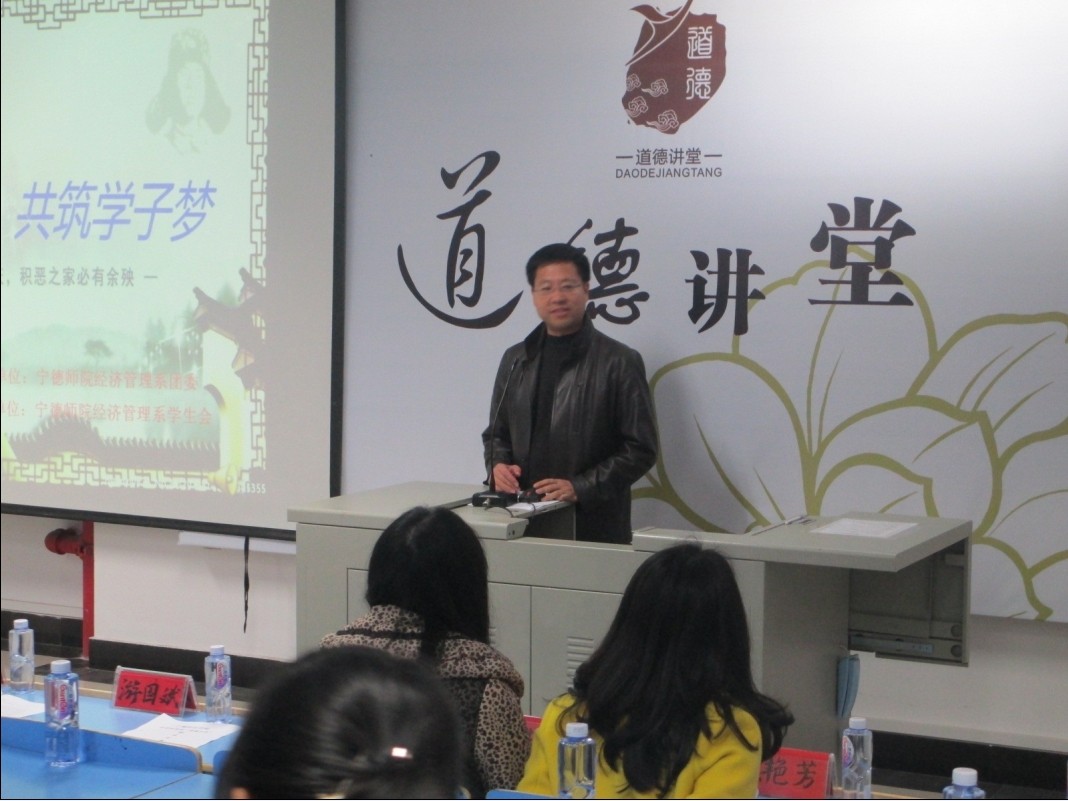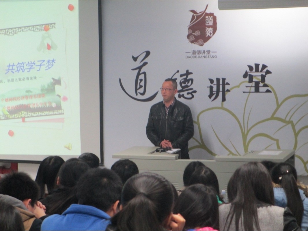 为了弘扬雷锋精神,丰富我系员工的精神生活,2014年3月11日下午三点半,经济管理系团委于讲堂群201教室举办第二届经济管理系“道德讲堂”活动。出席本次活动的有:经济管理系党总支书记游国斌教授、系党总支副书记周建辉老师,系员工党支部书记储苏凯老师,系团委书记王佳佳老师,大一辅导员杜艳芳老师及百余名员工。
