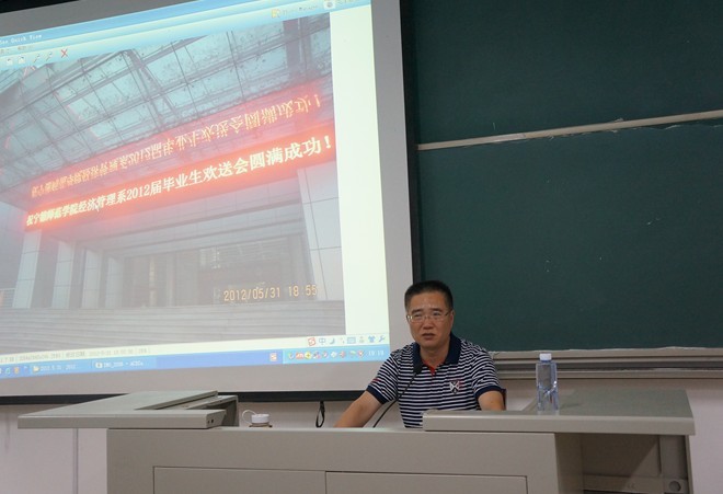 大会之初,赵公弼书记发表了重要讲话。首先对2012届欢送会的圆满举办表示了充分的肯定,这是我系近几年来最好的一场欢送会,在宁德市最高对外展示窗口——会展中心举办,整个晚会组织有序,节目的娱乐性高、内容丰富、格调高,这都离不开各班级的高度重视和积极性、主动性。晚会中互赠礼物这一环节,透露出每一个经管员工深重而浓厚的情谊。体现了上下届、师生间的情缘、情义、情趣。之后,赵书记在肯定了员工会的工作之后指出了员工会工作中存在的一些缺点,并要求员工干部在以后的工作中予以改正。最后,随后着温书假的来临,希望员工干部可以认真备考,取得优异的成绩,以起带头模范作用。