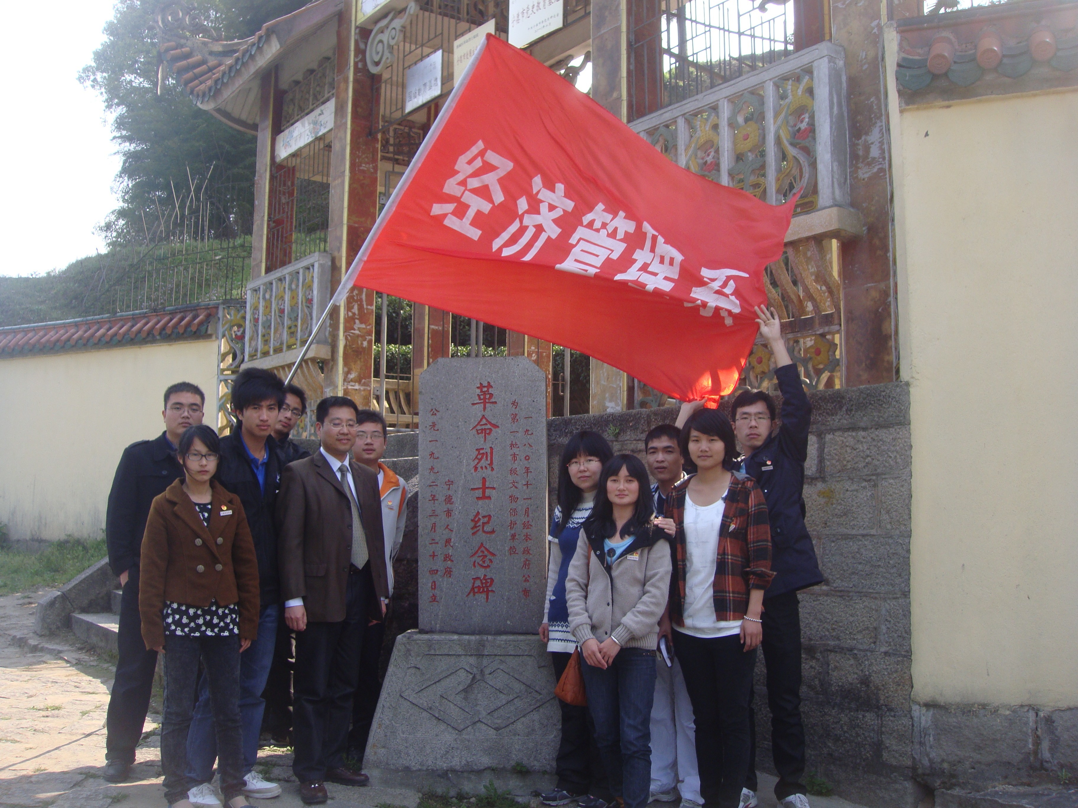 2011年4月5日清明节之际,为了响应全国庆祝建党九十周年的活动,在系主持工作副主任游国斌教授的带领下,我系师生代表前往宁德单石碑烈士陵园,缅怀革命烈士,以表哀思之情。