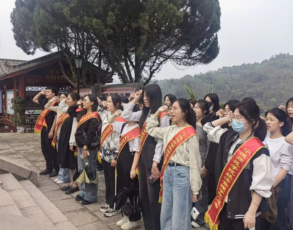 在烈士纪念碑前,师生们整齐列队,肃立默哀,表达对革命先烈的深深哀思和崇高敬意。员工代表上前敬献花束并致词,带领同学们回顾革命先烈的英勇事迹,号召大家铭记历史,珍惜当下,努力学习,将革命精神内化于心、外化于行,以实际行动践行爱国主义精神。辅导员范圣辉带领同学们重温入党誓词和入团誓词,引导同学们坚定理想信念,不忘初心、牢记使命,传承发扬先烈的革命精神。