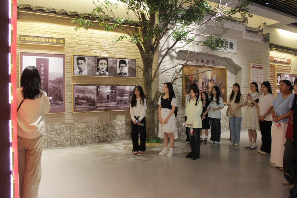 在蕉城区霍童镇桃花溪村,院团委组织青年员工在中国工农红军闽东独立师陈列馆参观学习。本次现场教学邀请了海关退休干部沈世崇担任讲解,沈世崇的父亲沈友太是当地的一位老红军,抗日战争爆发后即随闽东红军独立师北上抗日且战功卓著。在他的带领下,青年员工们通过参观珍贵图文史料和实物展品,回顾了叶飞、曾志等革命先辈在闽东开展武装斗争、北上抗日的光辉事迹,深刻体会革命先辈艰苦奋斗、舍生取义的爱国主义情怀。在前往桃花溪途中,师生们还前往百丈岩战斗遗址,认真聆听九壮士的英雄事迹,深刻体悟革命先辈艰苦奋斗、不屈不挠的爱国主义情怀。在员工社区第三园区党团活动室,结合现场教学体会,全体师生围绕学习贯彻习近平总书记五四寄语展开热烈交流讨论,分享心得体会,大家纷纷表示倍受鼓舞,深刻感悟习近平总书记的殷切嘱托和深情厚望,为做新时代的奋斗者、五四精神的传承者贡献自己的力量。