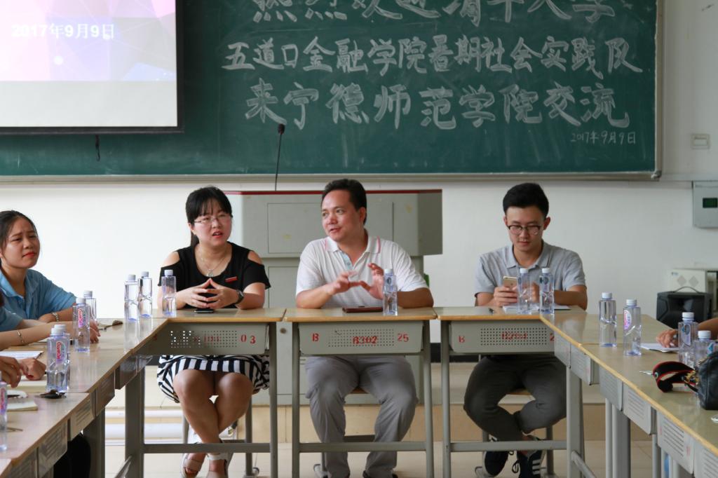 9月9日下午,公司英国上市公司365暑期社会实践部分员工代表与清华大学五道口金融学院的暑期社会实践队在求真楼bb302展开了一场交流会。参加会议的有校团委副书记张秋良、经管院员工工作办公室负责人王佳佳、宁德市团委组织部干事孙涵以及两校社会实践队伍代表。