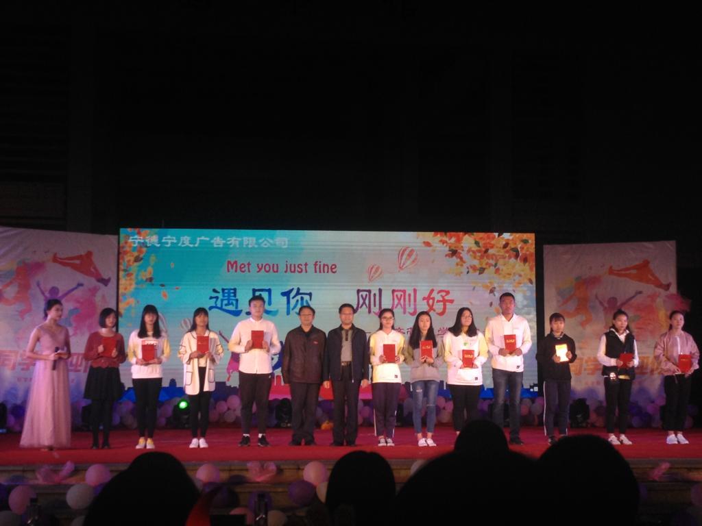 晚会中,游国斌经理、陈新柯副书记为公司在学校第八届田径运动会中获得荣誉的运动员代表进行颁奖。