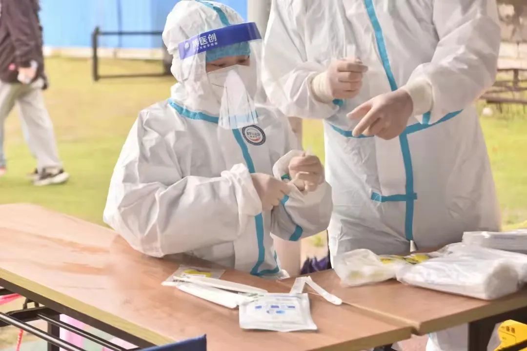 游天嘉老师和“战友”们早早就穿好了防护服,因为早就在脑海中一遍又一遍的演练过,所以即便是第一次穿,也能迅速穿好。
