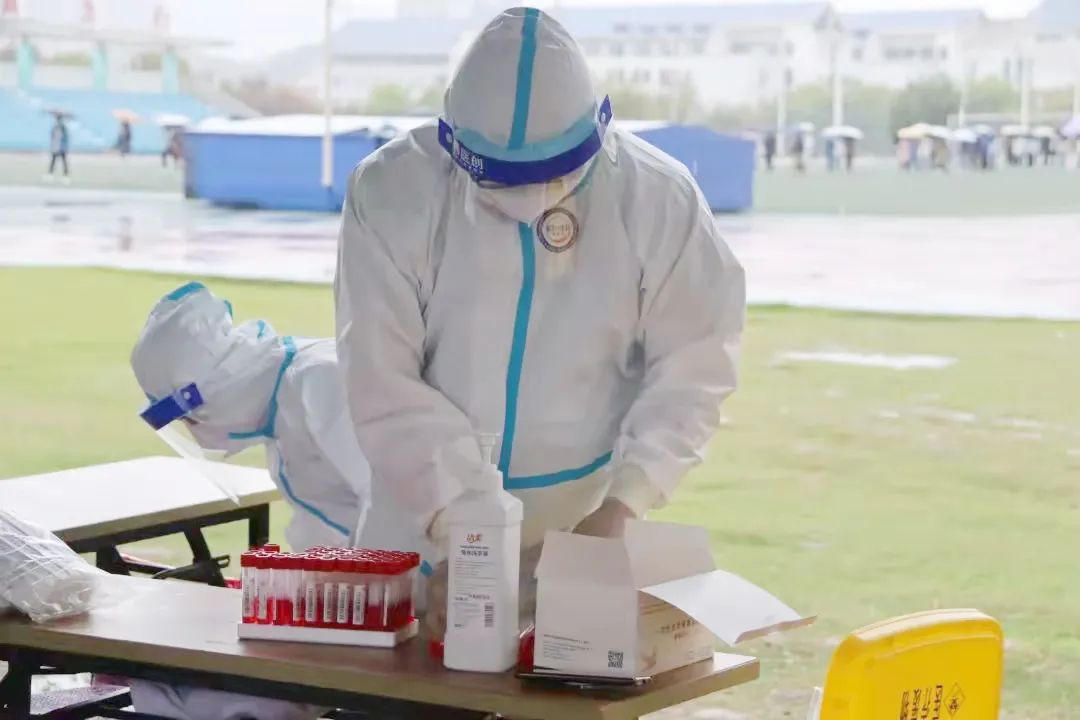 “幸好降温了,没有那么热。”游天嘉老师一开始这么想着,但是持续的机械劳动还是使她满身汗,手掌心也流汗起来,橡胶手套紧紧地贴在皮肤上。“老师,你怎么在这里?”游天嘉听到了有些熟悉的声音抬起头来,原来是自己班级的员工,因为露在外面的双眼认出来自己。隔着口罩,手头上还在忙碌,她仅仅是眨了眨眼睛对同学示意。当游老师忙完打开手机查看消息时,列表里都是同学们听到她参加核酸工作后发来的问候。