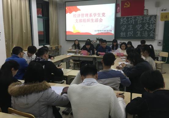 2017年1月4日晚18点,经济管理系员工支部在东侨校区求真楼b204召开经管系员工支部组织生活会。参与这次会议的有经管系员工党支部书记邱文君、系团委书记王佳佳、辅导员杜艳芳及员工党员。大会主要围绕自我评价与批评、了解全体党员与预备党员近期思想动态等展开讨论。
