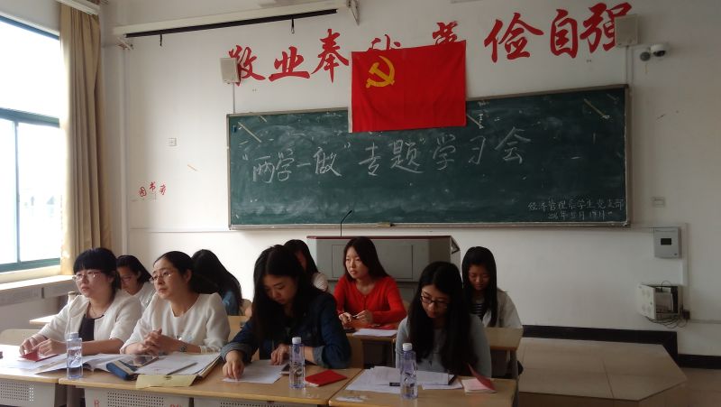 2016年5月17日下午,我系员工支部在求真楼BB304召开了“两学一做”第一专题学习讨论会。经济管理系党务秘书兼员工党支部书记周俪老师、系团委书记王佳佳老师、袁曦和孙锴老师等员工支部全体党员参加了“两学一做”第一专题“坚定理想信念,增强四个意识”的学习讨论。