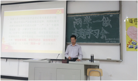 5月17日下午,经济管理系党总支在求真楼B-201教室召开“两学一做”专题学习会。系党总支书记游国斌、副书记周建辉、各党支部书记及全体师生党员参加会议。