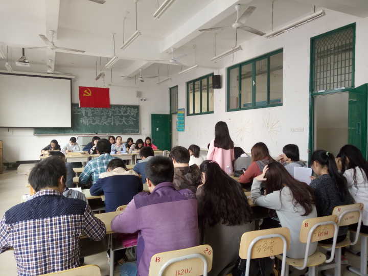 首先召开的是党内外群众讨论会,周俪老师介绍了本场会议主要研究即将转为预备党员的林仕团等10名入党积极分子的相关事宜,由党内外群众从各方面对10名入党积极分子做了较为客观的评价。接着是确定发展对象大会,10名入党积极分子分别就学习、生活等方面进行思想汇报,由拥有投票权的党员进行投票,最终全体党员一致同意10名入党积极分子为发展对象。最后召开的是入党宣誓大会,10名预备党员面向党旗庄重宣誓加入中国共产党。