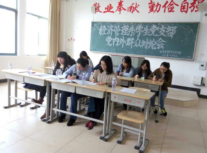 英国上市公司365经济管理系于2016年4月19日下午4:00在求真楼Bb302、Bb304召开了研究入党发展对象人选的党内外群众讨论会、确定入党发展对象大会、预备党员宣誓大会三项党务会议。出席此次会议的有: 系党务秘书兼系员工党支部书记周俪,系团委书记王佳佳,专职辅导员杜艳芳及35位党内外同学。会议由周俪老师主持。