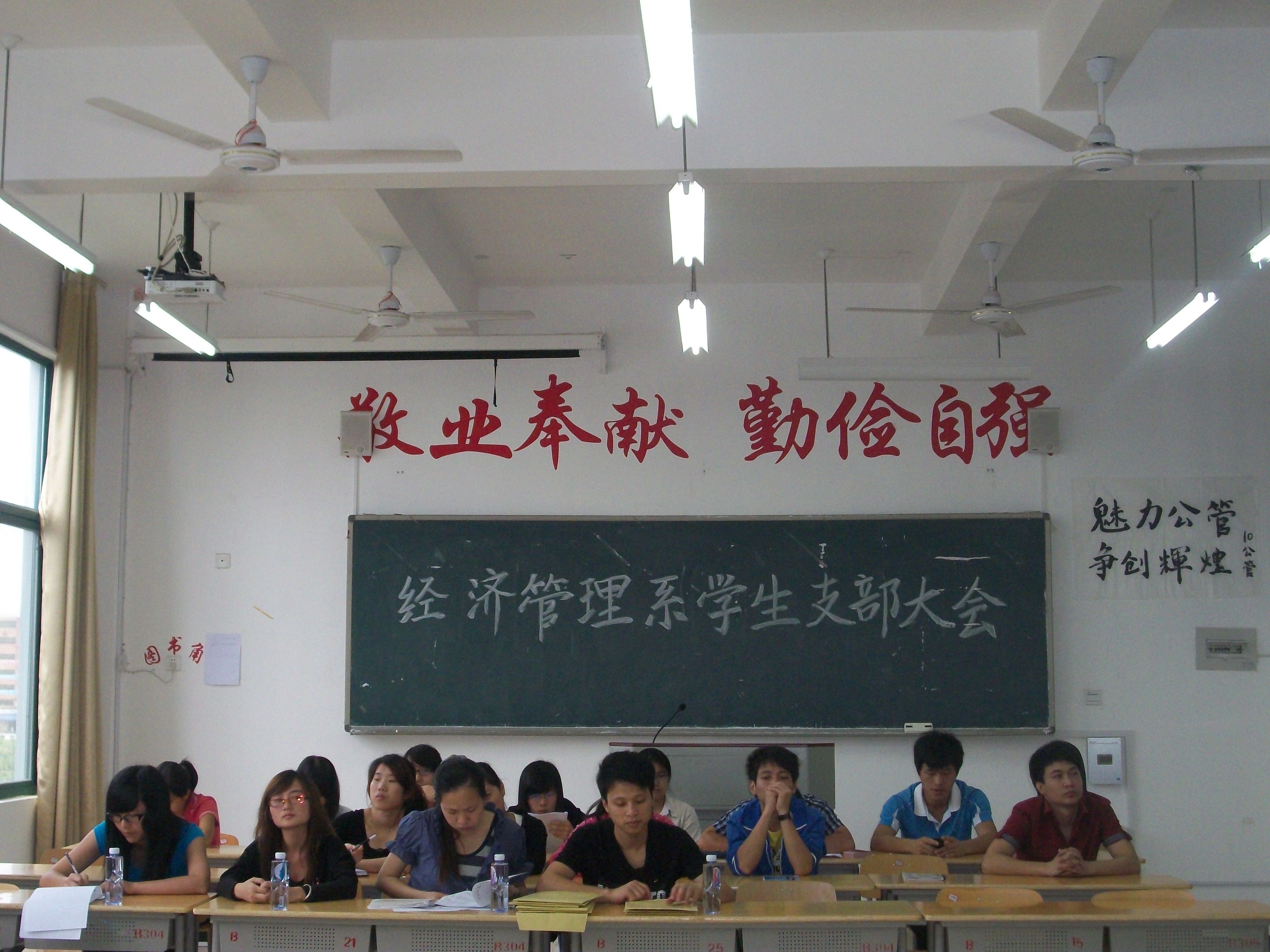 2012年5月26日下午2:00我系在BB302召开员工支部大会,出席大会的有系党员工支部书记周建辉老师、徐贵登老师、王佳佳老师、林秀春老师、9位员工党员以及23位预备党员。